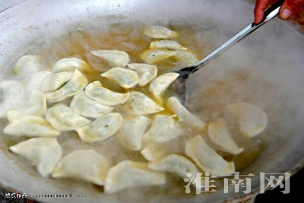 ▲壽縣安豐塘鎮蘇王街道胡多平老人為趕集的老鄉煮餃子。