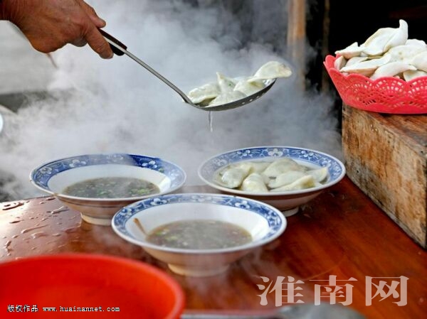 ▲12月21日,冬至,安徽省淮南市壽縣安豐塘鎮蘇王街道老夫妻姚傳永、胡多平為趕集的老鄉煮餃子,3元一碗熱乎乎的餃子溫暖鄉村老人。