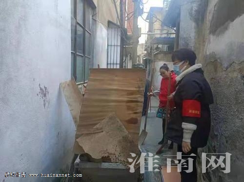 圖為王遠(yuǎn)遠(yuǎn)(前)和同伴在清理社區(qū)廢棄物。(記者 張雪峰 攝影報道)