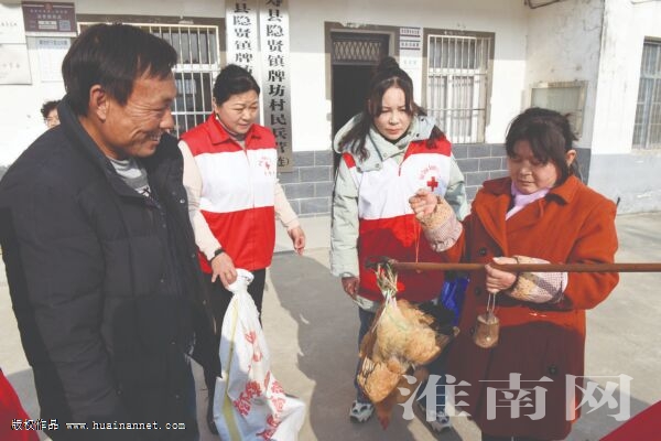 (記者 廖凌云)“這公雞真漂亮!”“這只鴨子足足有五斤重!”1月15日上午,壽縣隱賢鎮(zhèn)牌坊村村委會門前很是熱鬧,人們搬的搬、抓的抓、稱的稱、算的算……個(gè)個(gè)忙得不亦樂乎。當(dāng)天,淮南市紅十字會組織志愿者前來購買“愛心雞”“愛心鴨”,幫助村民銷售自家養(yǎng)殖的雞鴨,并開展慰問幫扶戶活動。
