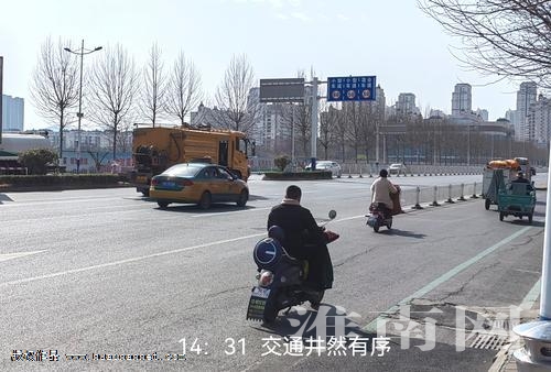 14時30分,淮河早報、淮南網記者再次來到交叉路口看到,路面秩序井然,機動車和非機動車都行駛在各自的車道上,行人和非機動車輛有序通過路口,不闖紅燈,不強行,一切有條不紊。