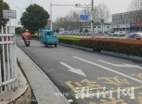 在該路口東北側非機動車道,正常本應是由東向西通行。7時47分,當其它非機動車輛從該路口正常通行時,一輛電動三輪車則從該路口一路向東逆行,顯得特別突兀。