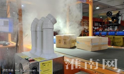 “每一件入淮快件都要先經(jīng)過消殺然后才能進(jìn)入終端分揀,到了分包區(qū)后,他們還會(huì)再進(jìn)行二次消殺。”淮南中通負(fù)責(zé)人介紹,“疫情防控常態(tài)化下,以前我們都是采取人工噴灑的方式進(jìn)行,現(xiàn)在更新了更為先進(jìn)的超聲波自動(dòng)噴霧消殺設(shè)備,快件在分揀機(jī)上,就會(huì)被噴霧自動(dòng)消殺,大大提高了消殺效率。”