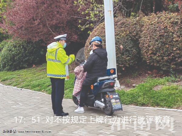 17時(shí)30分到18時(shí)30分,淮河早報(bào)、淮南網(wǎng)記者再次來到淮河大道和民惠街交叉口,淮南市公安局交警支隊(duì)的交警正在進(jìn)行晚高峰執(zhí)勤,“這次對(duì)你處以30元罰款,并希望你盡快登記上牌。”17時(shí)46分,一名中年女性騎著電動(dòng)車由北向南行駛被交警攔下,因?yàn)槠潆妱?dòng)車購買數(shù)月都沒有按照規(guī)定上牌,被當(dāng)場(chǎng)處罰,并受到交警的批評(píng)教育,“如果下一次被發(fā)現(xiàn)仍未上牌,將對(duì)其處以50元罰款、暫扣其電動(dòng)車。”