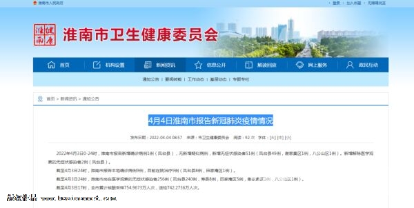 2022年4月3日0-24時,淮南市報告新增確診病例1例(鳳臺縣),無新增疑似病例,新增無癥狀感染者51例(鳳臺縣49例,謝家集區(qū)1例,八公山區(qū)1例)。新增解除醫(yī)學觀察的無癥狀感染者2例(鳳臺縣)。