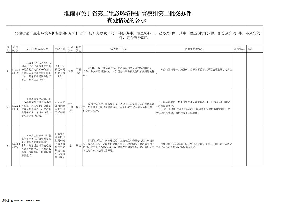 淮南市關(guān)于省第二生態(tài)環(huán)境保護(hù)督察組第二批交辦件查處情況的公示