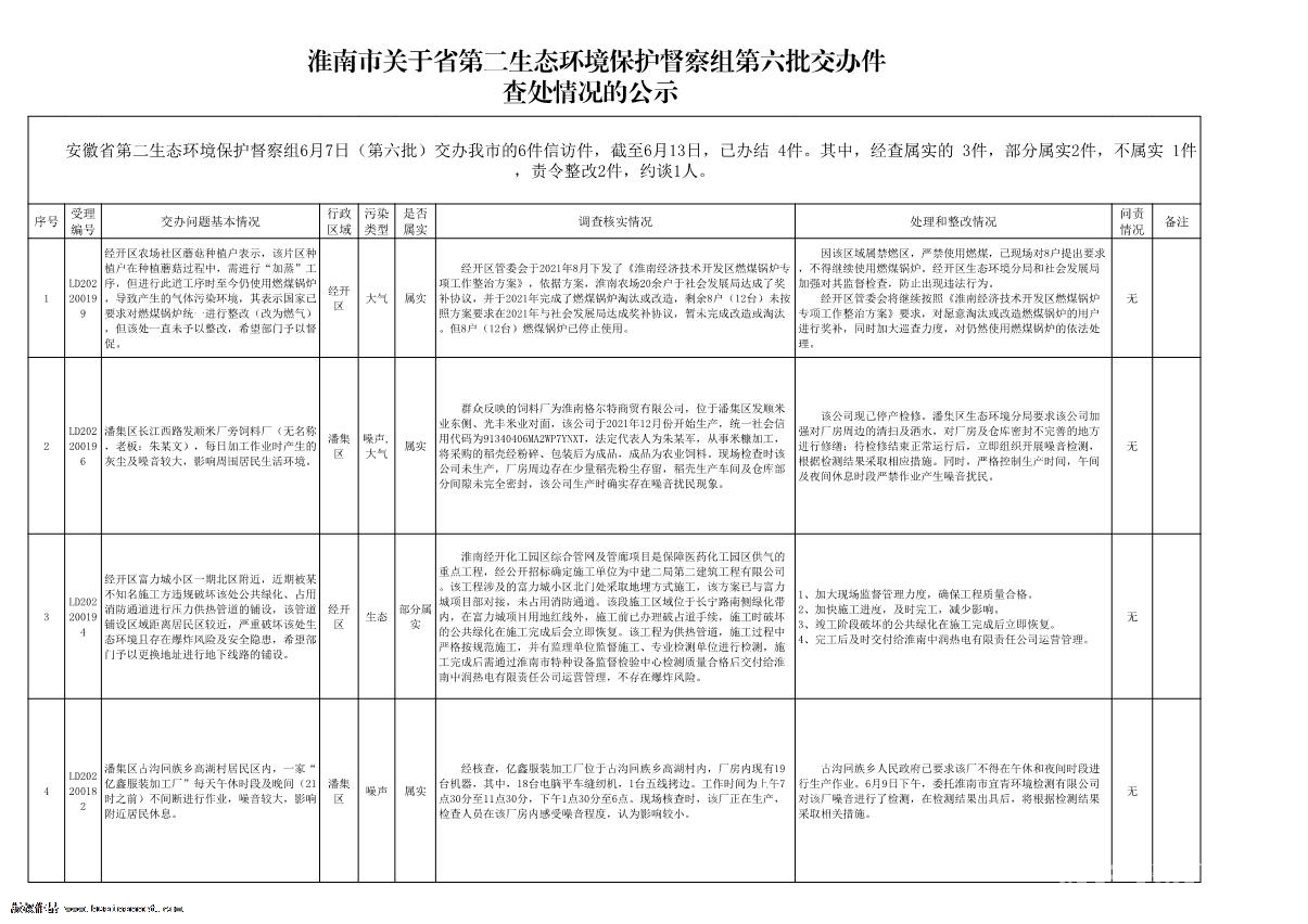 淮南市關于省第二生態環境保護督察組第六批交辦件查處情況的公示