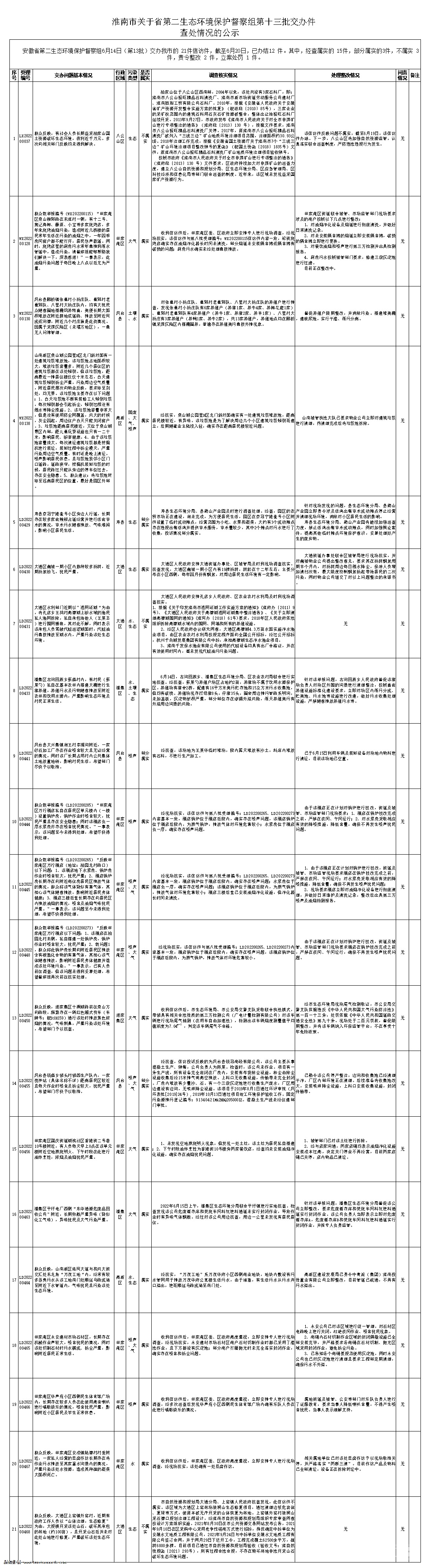 淮南市關于省第二生態環境保護督察組第十三批交辦件查處情況的公示