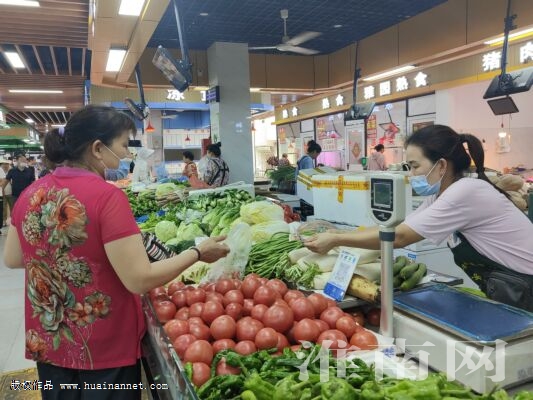 田家庵區堅持創建為民惠民理念,大力加強菜市場建設,先后建成投用南嶺新村、南山村、幸福雅園、新淮等5座標準化室內菜市場,為轄區居民提供干凈舒適的購物環境。圖為:近日,市民在幸福雅園菜市場選購新鮮蔬菜。(記者 李東華 攝)