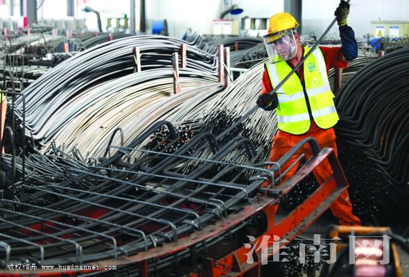 8月9日,工人在中鐵四局安徽智能制造有限公司盾構管片制造基地忙碌。