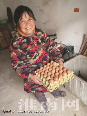 圖二:村民高大娘手捧村里發放的老母雞產下的蛋。