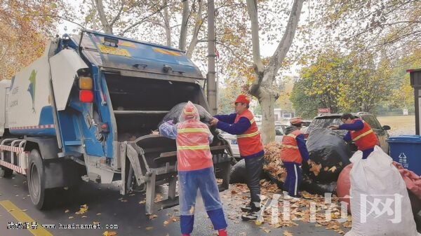 盡管如此,花愛蓮帶著同事們掃一次不行就掃兩次,就這樣一遍又一遍清掃,直到把路面清掃干凈。然后,將掃成堆的樹葉等裝入黑色的大袋子中,由清運車拉到垃圾轉運站處理。