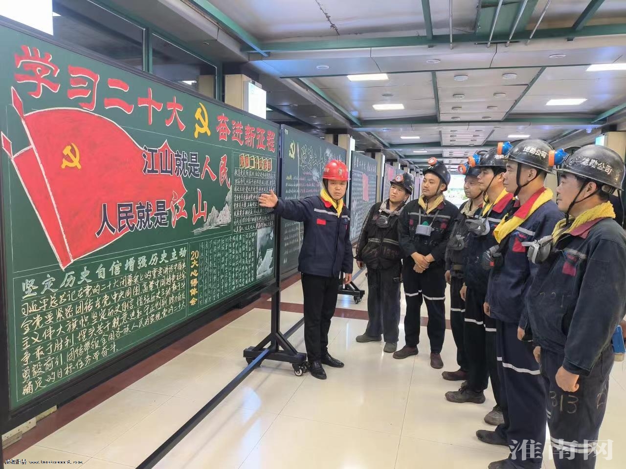 中煤新集地勘公司積極組織職工學習黨的二十大精神,進一步提高全員思想認識,振奮精神、明確方向,推動各項重點工作有序開展。圖為職工在觀看黨的二十大精神宣傳展板。(通訊員 岳全文)