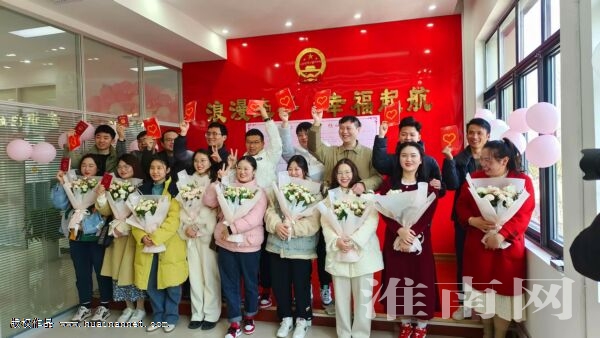 2月14日,在八公山區婚姻登記處登記員的帶領下,9對新人共同宣讀了《結婚誓詞》,許下鐘愛一生、永結同心的美好誓言。為倡導移風易俗,弘揚婚俗新風,八公山區民政局舉辦了此次婚姻登記集體頒證活動。據悉,八公山區是安徽省第二批婚俗改革實驗區,將開展為期3年的婚俗改革試點工作。舉辦此次婚姻登記集體頒證活動,正式拉開了八公山區婚俗改革試點的序幕。(記者 朱慶磊 攝)