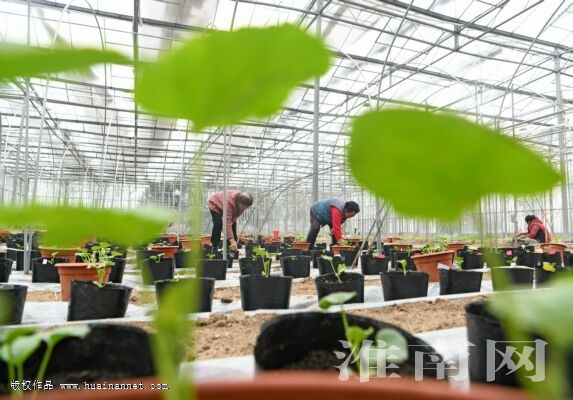 3月22日,淮南市潘集區蘇園生態園酥瓜育苗基地,村民育苗種植國家地理標志保護產品潘集酥瓜。目前潘集酥瓜種植面積達1.5萬畝,年產值2.2億元,種植戶涉及11個鄉鎮46個村3000戶左右,從業人員近1萬人。(特約攝影 陳 彬 攝)