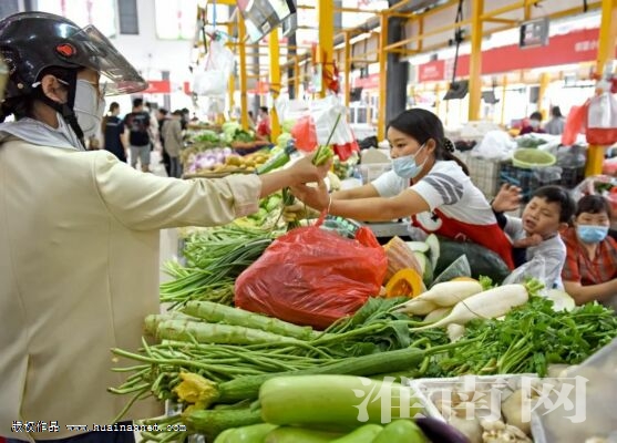 安徽省淮南市通過“智慧菜市場(chǎng)”建設(shè),打造15分鐘便民生活圈,解決好新城區(qū)群眾買菜難、老城區(qū)菜市場(chǎng)環(huán)境差等問題。圖為市民在干凈、整潔的高新區(qū)鄰里中心農(nóng)貿(mào)市場(chǎng)買菜。(陳彬 攝)