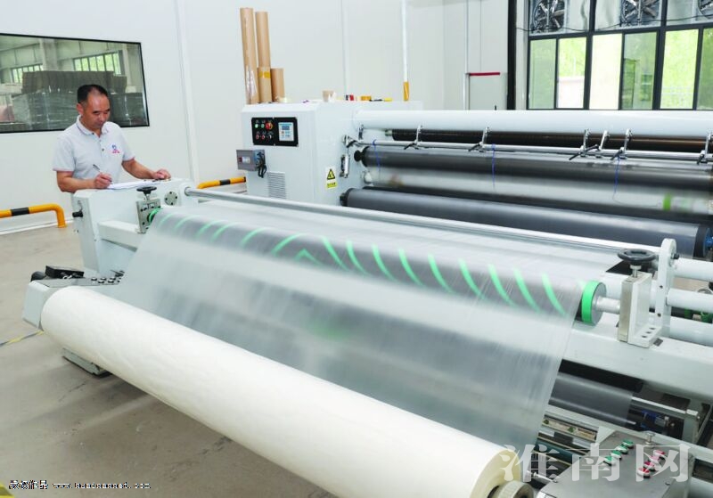 圖為位于壽縣新橋國際產業園的安徽億鴻新材料科技有限公司正在生產薄膜制品。該公司主要產品是預涂膜、BOPP薄膜等,目前1號、2號兩棟廠房已竣工投產,二期廠房3A、3B主體正在施工中,預計7月份完工。項目達產后,可實現年產值約12.5億元,稅收約4000萬元。(記者 張 越 攝)