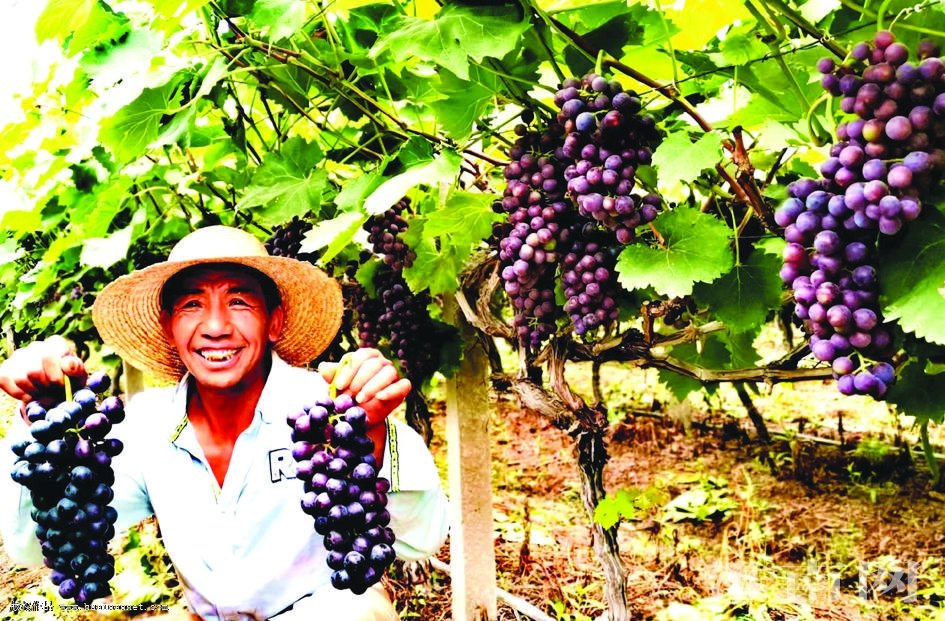 近日,鳳臺縣關店鄉蔡莊、關店、向橋等村的千畝葡萄園里碩果累累、清香四溢,香甜可口的葡萄每天除了保證本地市場供應外,還通過物流、批發商及時遠銷合肥、上海等城市。圖為關店村葡萄種植戶唐玉平種植的葡萄日銷售達5000斤以上。(記者 劉銀昌 通訊員 唐家林 攝)