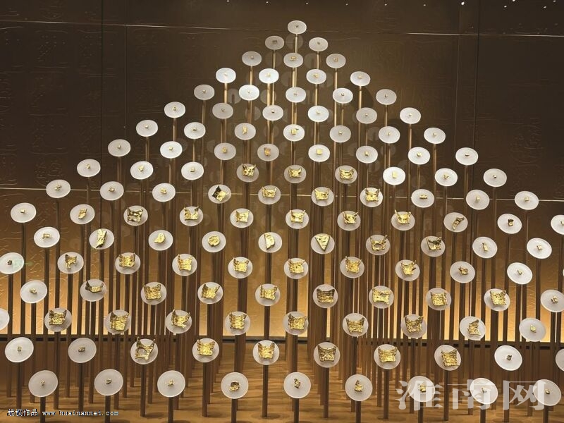 走進博物館,一面由楚金幣組成的“金山”,出現在人們的面前,吸引人駐足在此,久久舍不得離開。這些金幣的形狀大小都各不相同,有楔形、有圓形,在燈光的照射下,每枚金幣都燦燦生輝、耀眼奪目,透過這一枚枚的楚金幣,仿佛看到了2000多年前楚國的繁華盛景。