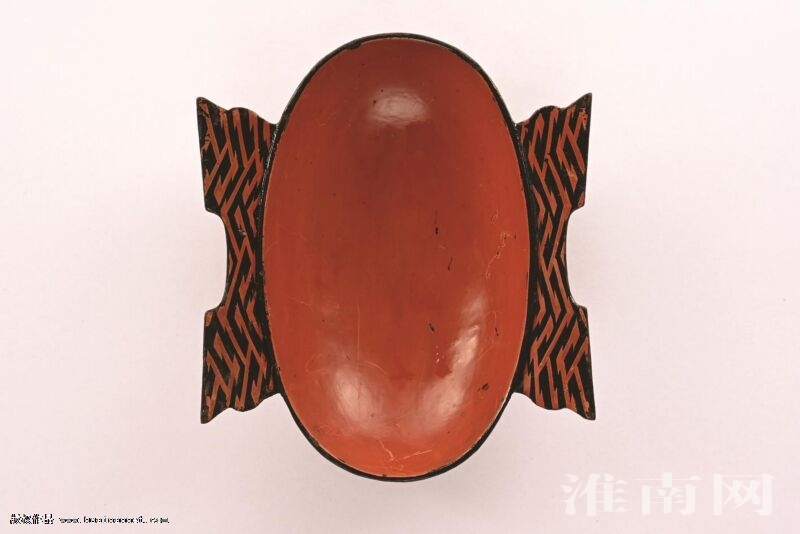 武王墩墓考古發掘出土漆器中,紅色和黑色是較為常見的色彩,尤其是紅色,特別鮮艷奪目。淮河早報、淮南網記者注意到,無論是漆耳杯、木俑首、木案、鎮墓獸還是編鐘編磬漆木支架等,其上面均有造型奇異、色彩靈動的圖飾,這些圖飾漆色有深沉的黑,艷麗的紅,對比鮮明,極具浪漫主義色彩。