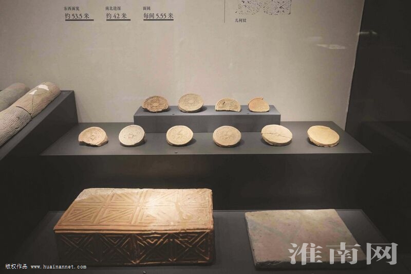 6月24日,淮河早報、淮南網記者在該館講解員孫曉菲的帶領下,來到了館內的一處展廳,這處展廳專門展示著壽春城遺址遺存出土的筒瓦、板瓦和瓦當等建筑遺存。在這里,我們看到了跟生活設施相關的圓形、三角形的陶制下水管、出煙管,還看到了跟房屋建筑材料相關的云紋槽磚、板瓦以及雕刻著精美紋路的半圓形、圓形的瓦當,這些物件帶著濃墨重彩的歷史氣息而來,讓人不禁為古人的智慧所驚嘆。在其中,有一種鳳鳥紋瓦當,這種瓦當呈圓形,窄邊沿,正中浮雕一展翅欲飛的鳳鳥。鳳鳥是古人以傳說中的鳳凰為幻構的神鳥,由自然界中多種動物融合而成的藝術形象,它在中華文化中的地位僅次于龍,是古代傳說中的“百鳥之王”。這件瓦當上鳳鳥紋展翅飛舞,具有很強的藝術感染力,在古代,鳳凰的形象經常出現在宮廷建筑和貴族住宅的裝飾中,尤其是在瓦當、磚雕、石刻等建筑構件上。該瓦當就出自柏家臺大型建筑遺址,這個遺址就位于壽春城遺址之中。