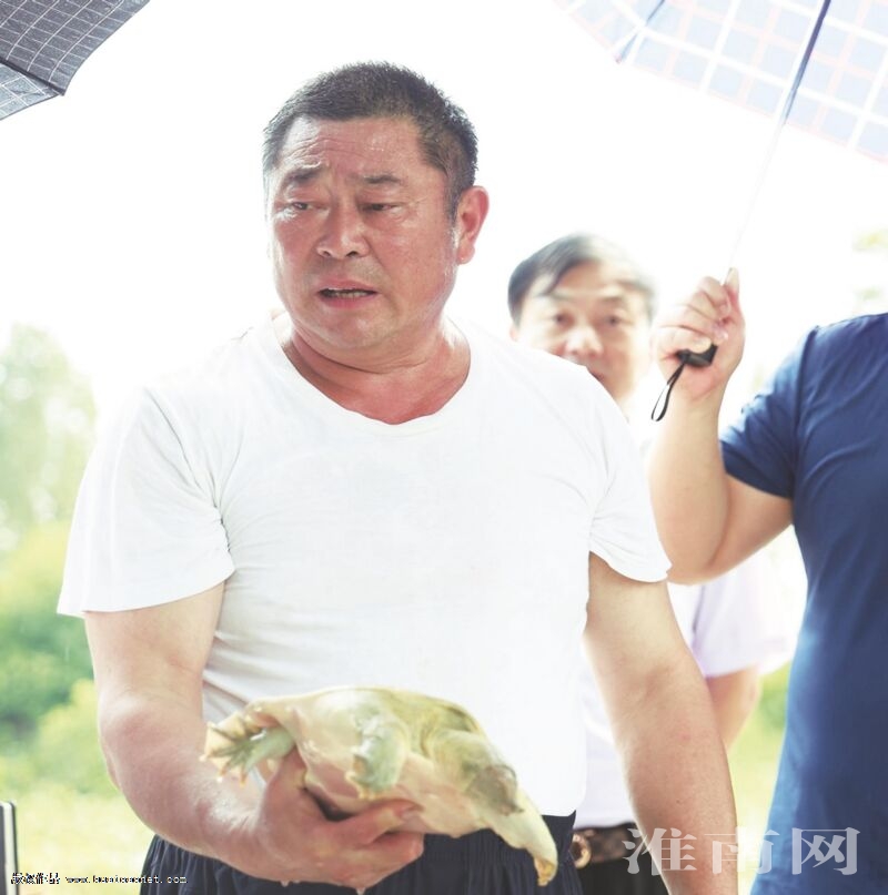 在池塘邊,擺放著幾個(gè)水箱,其中便有成鱉和甲魚(yú)苗。曹本偉拿起一只壽豐中華鱉向淮河早報(bào)、淮南網(wǎng)記者展示,卻見(jiàn)這成鱉力氣大得驚人,若非曹本偉熟知其習(xí)性,普通人還真控制不住。“這只鱉7斤多重,兇得嘞。”