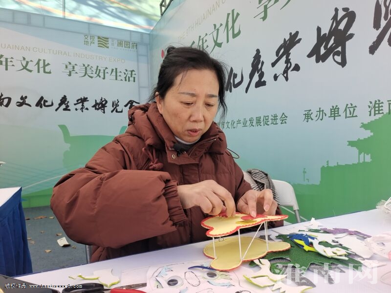 “這個是兔子造型的花燈嗎?好漂亮啊!”“這個花燈跟我們小時候見過的好像有點不一樣呀!”在淮南燈彩展臺前,不少市民圍著各式改良后的燈彩制品駐足欣賞,非遺傳承人沈長鳳一邊向大家介紹各式手工制品,一邊展示制作工藝。 沈長鳳告訴淮河早報、淮南網(wǎng)記者,燈彩又叫“花燈”,始于西漢、興于隋唐,是中國的一種傳統(tǒng)民間手工藝品,距今已有近兩千年的歷史。而其制作的燈彩制品在傳統(tǒng)技藝上進行了改良,用鐵絲搭建骨架,用高級綢緞做外衣,并手工繪制圖案,最后用金邊進行裝飾;不僅融入了淮南元素,還兼具趣味與收藏價值,入選了淮南市田家庵區(qū)第二批非物質(zhì)文化遺產(chǎn)項目。