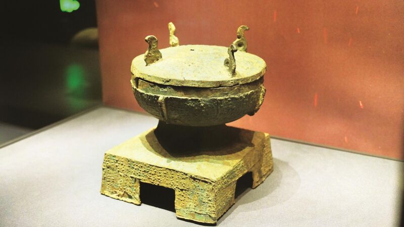 在安徽楚文化博物館內(nèi),就館藏著一件戰(zhàn)國(guó)晚期楚國(guó)青銅器——銅簋,由安徽博物院提供。這件銅簋,造型、裝飾與西周、春秋的銅簋相比,別看它其貌不揚(yáng),品相不佳,但卻是國(guó)寶級(jí)文物。