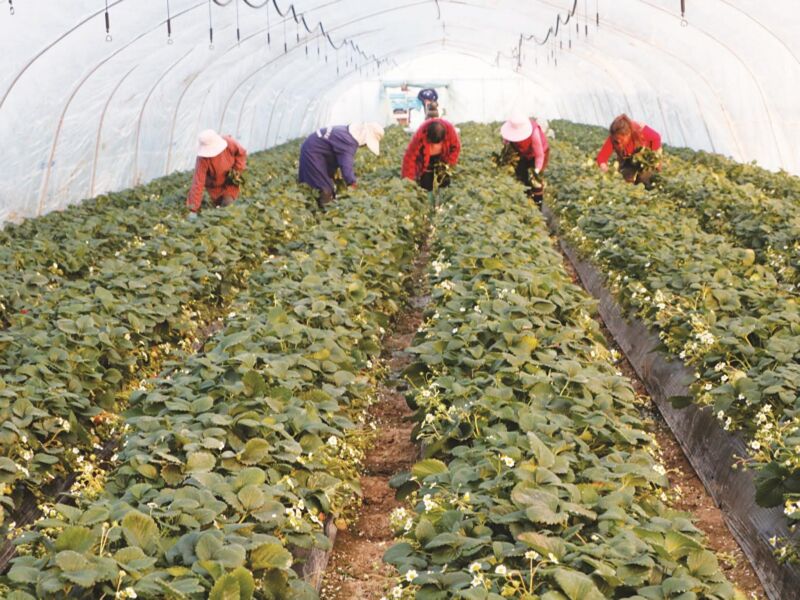 如今,劉明青已年過六旬。在淮河早報、淮南網(wǎng)記者看到她時,劉明青正在大棚旁的棚屋里分揀草莓,就是按果實大小分級。劉明青說,每天早上6點來鐘,她就要往這趕7點的班,上午是4個小時,下午是從1點到5點,也是4個小時,一天共8個小時。需要加班的話,會另加錢。現(xiàn)在這個階段,每天早上來了就是采摘草莓,之后就是分揀。劉明青是這里的長年工,每年能干到320天。