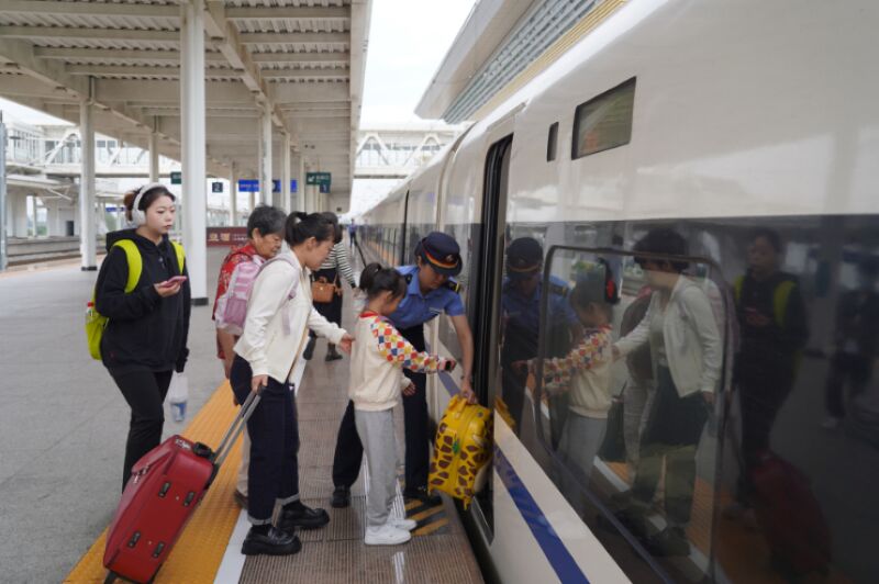據(jù)車站工作人員介紹,為確保旅客出行安全有序,淮南鐵路部門進一步強化了旅客運輸組織,各客運車站根據(jù)當日票額預售、重點車次、高峰時段等情況,合理安排安檢查危、進站檢票、站臺組織等作業(yè)力量,加強進站口、安檢口、天橋、站臺等安全關(guān)鍵部位的疏散引導;充分發(fā)揮“舜”系列雷鋒服務站作用,推出“愛心五色包”“彩虹便利貼”“銀發(fā)專窗”等服務,滿足不同旅客出行需求;增配鐵路志愿者30余名,做好咨詢解答、安全防護、重點旅客幫扶等服務。同時,車站對旅客購票情況進行動態(tài)監(jiān)控,隨時根據(jù)旅客出行變化及時調(diào)整列車運能和開行計劃。
