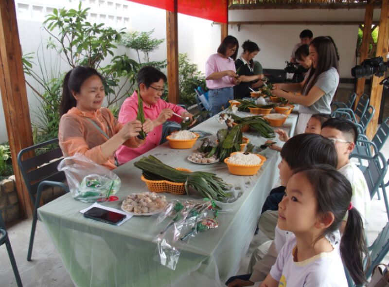 “米之源”的迎端午包粽子活動分設兩個地點,一處位于舜耕山麓的休閑小院,另一處在山南英倫聯邦小區進行,現場布置了端午文化體驗區。活動伊始,主持人娓娓道來端午節的起源和屈原的愛國故事,為現場觀眾送上節日祝福。隨后進行的端午節知識搶答環節中,孩子們爭先恐后地舉手作答,歡笑聲中收獲香包、端午扇等精美獎品。最熱鬧的包粽子比賽隨即展開,參與者們圍坐在擺滿糯米、粽葉和蜜棗的桌前,靈巧地將翠綠粽葉卷成漏斗狀,填入晶瑩的糯米和紅潤的蜜棗,仔細包裹壓實后,用棉線纏繞固定,一個個棱角分明的粽子便在歡聲笑語中誕生,現場洋溢著濃濃的節日氛圍。