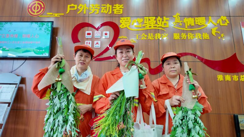 活動(dòng)還特別準(zhǔn)備了暖心粽子,分發(fā)給每一位參與者。小小的粽子承載著對(duì)戶外勞動(dòng)者辛勤付出的感謝與敬意。一位環(huán)衛(wèi)工人感動(dòng)地說:“今天不僅學(xué)會(huì)了做艾草花束,還收到粽子,心里特別溫暖。”