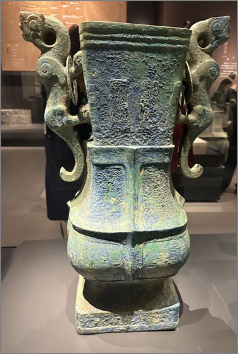 安徽楚文化博物館里展出的蟠虺紋獸耳銅方壺,壺身飾有蟠虺紋、凸弦紋和“十”字形凸棱紋,細(xì)節(jié)之處盡顯古代工匠的獨(dú)具匠心。蟠虺,在中國古代文化中是一種極具特色的圖騰式紋樣,以蟠曲的小蛇狀為單元,組合成相互纏繞、呈網(wǎng)格狀的幾何圖形。這種紋樣常鐫刻于青銅器、玉器、印章等工藝品上,是貴族禮儀器物的常見裝飾,象征權(quán)力與吉祥。