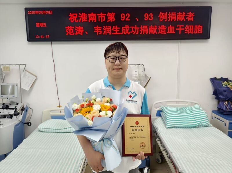 從扶貧一線到文字案頭,再到無私捐髓,市委辦公室秘書二室主任范濤用熱血與忠誠,生動詮釋了一名共產黨員、一名人民公仆的初心和擔當。9月5日,他成功捐獻造血干細胞,為一名素未謀面的血液病患兒點亮生命希望,成為淮南市第92例、全省黨委辦公室系統首位造血干細胞捐獻者。