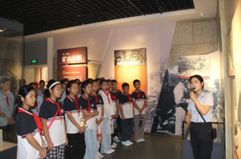 在紀念館內,師生跟隨講解員依次參觀主題展廳。沉重的歷史通過一幅幅圖畫、一段段文字無聲訴說;“死難礦工三萬余人”的數字觸目驚心,銹跡斑斑的礦燈、殘缺的勞動飯票真實再現昔日礦工的悲慘遭遇。場景復原區中,瘦骨嶙峋的勞工蜷縮于礦洞一隅,年幼童工的身影更是令眾多學生潸然淚下。