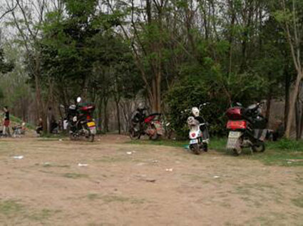 圖二:前來游玩的市民隨意將電動車和摩托車騎進景區(qū)內(nèi)