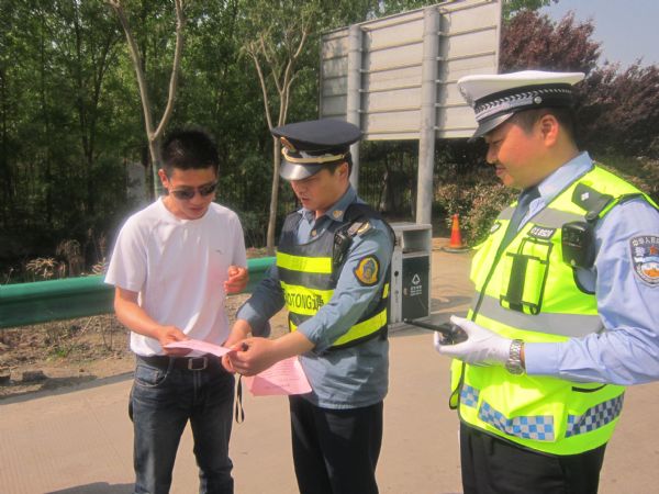 圖:執(zhí)法人員向在合淮阜高速淮南西出口停車的駕駛員進行宣傳勸離
