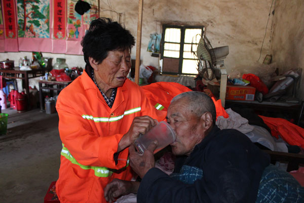 72歲,對很多老人來說,是一個頤養天年的年紀。然而在毛集實驗區卻有一位名叫楊正云的高齡環衛工人,她一邊從事路面清掃工作,一邊照顧體弱多病的丈夫、下肢三級殘廢的兒子,及神志遲鈍的兒媳和孫子。