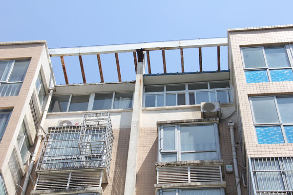 在該小區采訪時,很多居民告訴淮河早報、淮南網記者:“自從小區入住開始,就有頂層住戶在六樓房頂加蓋房屋,雖然小區居民多次向物業反映,但是一直沒有有效制止,導致現在頂層幾乎全部被加蓋成為房屋。而小區房屋承重是有限的,像這樣憑空增加了一層房屋,我們很擔心會對房屋承重造成影響。而近期一樓的住戶又開始在院子里蓋房,房頂一直蓋到二樓的窗戶下,目前小區內已經有多戶一樓居民院子內違建已經建成,而至今物業也沒有有效地管理。”