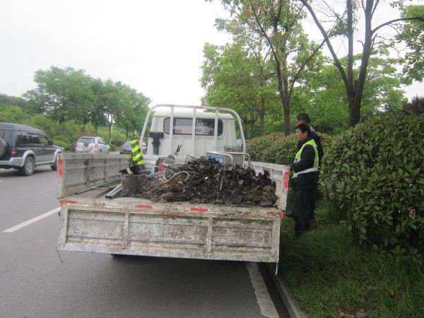 圖三:雨水井內(nèi)清理出來(lái)的淤泥和雜物。
