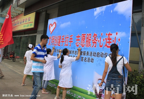 8月23日,八公山區舉行“文明創建手拉手 志愿服務心連心”主題志愿服務活動啟動儀式,標志著該區各志愿隊伍分片分類開展志愿服務活動開始。當天,100多名志愿者簽名表示要為創建省級文明城市貢獻力量,接下來,他們將開展義診、法律咨詢、文明勸導、環境清掃等多項志愿服務。