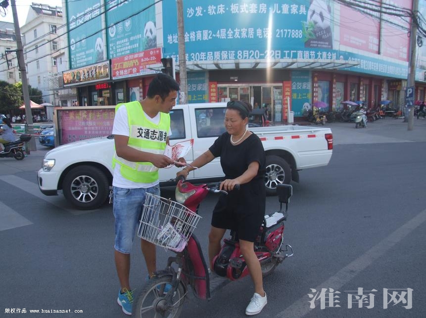 當日上午9時,交通志愿者們身穿志愿者標志反光背心來到長江路天柱山路口、紅旗樓路口以及九華山路口向行人發放宣傳材料,宣傳交通法規,對行人橫穿馬路、亂闖紅燈等不文明行為進行教育引導,并對違反交通規則的行人進行勸阻,糾正其不文明行為。志愿者們攙扶老人過斑馬線、勸導非機動車輛按道行駛,教育引導市民遵守交通法規,文明行路、文明行車。