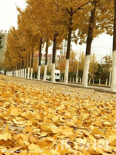 圖:振興南路保留銀杏落葉,為淮南增添一抹亮色。