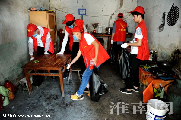 為響應“向垃圾宣戰(zhàn)、建美麗家園”農(nóng)村環(huán)境集中整治行動,鳳臺縣團委組織千名文明志愿者騎行公共自行車走進14個貧困鄉(xiāng)鎮(zhèn)貧困村,沿途進行文明創(chuàng)建宣傳,對貧困村周邊環(huán)境進行清理,到貧困戶家中幫助他們整理房屋、打掃室內(nèi)外及周邊環(huán)境衛(wèi)生等,用志愿行動改善農(nóng)村生態(tài)環(huán)境。圖為團縣委組織志愿者幫助劉集鎮(zhèn)王咀村貧困戶劉高生整理清掃室內(nèi)外環(huán)境衛(wèi)生。