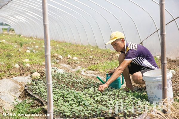 為了幫其早日脫貧致富,結合酒西村西瓜種植優勢,村兩委鼓勵其種植西瓜,酒西村第一書記趙坤介紹李遠防的兒子盛毛毛到西瓜種植大戶那去學習。2015年,盛毛毛經多方籌集開始種植大棚西瓜。期間,趙坤多次請種植大戶到田間地頭對盛毛毛進行指導,從西瓜育苗、大棚控溫、施肥、澆水、拿叉、點花到成熟全過程進行詳細指導。2015年,盛毛毛的大棚西瓜種植成功并獲得了收益。2016年又擴大了大棚種植面積,從當初的6畝擴大到如今的13畝。在李遠防、盛毛毛的精心管理下,2016年大棚西瓜獲得了大豐收,每畝純收入達10000多元。