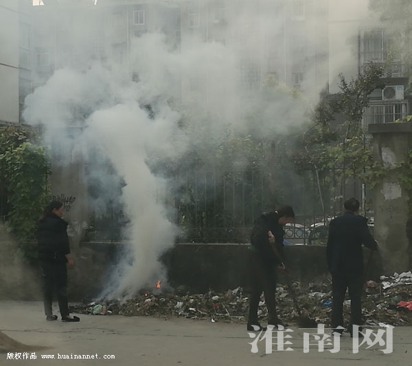 11月3日上午8時30分,田家庵區華聲苑小區的李先生用手機拍攝一段視頻,畫面顯示,大量生活垃圾直接在小區內露天焚燒,冒出滾滾黑煙。
