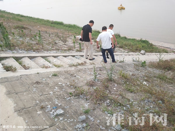 6月5日,淮河早報、淮南網記者來到事發堤壩。在現場,堤壩一處階梯上被鋪滿了碎玻璃碴,沿著階梯兩側十多米的斜坡上也滿是玻璃碴。從階梯延伸至河邊的一處下水平臺上也被鋪滿了碎玻璃碴,市民稍有不慎便會中招。據前來游泳的市民介紹,這幾天已經有不少人的腳被劃破了。家住附近的游泳愛好者胡先生告訴淮河早報、淮南網記者,6月3日下午5時許,附近村民看到有一輛滿載玻璃瓶的農用三輪車行駛至此處堤壩,從車上下來四個男子,二話不說,便拿著玻璃瓶向堤壩階梯扔去,直至鋪滿整條階梯,甚至連階梯兩側的斜坡也沒有放過。不少前來游泳的市民小心翼翼地趟著樓梯一步步向河邊走去,深怕玻璃碴扎到自己。