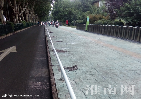 最近幾天,淮河早報、淮南網記者看到城管部門正在組織施工人員,在主城區一些容易發生機動車違停的繁華路段的人行道邊,安裝鐵護欄。淮河早報、淮南網記者發現,這些安裝在人行道邊的鐵護欄高約30厘米,完全可以阻止機動車在人行道上違停,但不會妨礙路人正常通行。(記者)