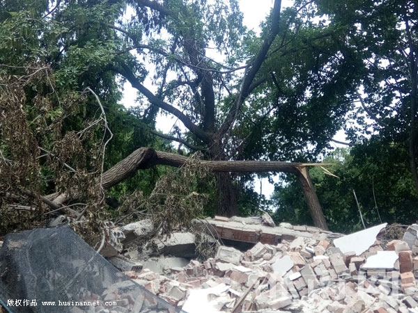 7月25日上午,市民孫女士向淮河早報、淮南網(wǎng)記者反映,在廣場南路東邊有一處拆遷工地,前些日子,負責(zé)該工地一棟樓房拆遷的工人在施工中,將一棵參天大樹攔腰折斷,讓人看了心疼。(記者)