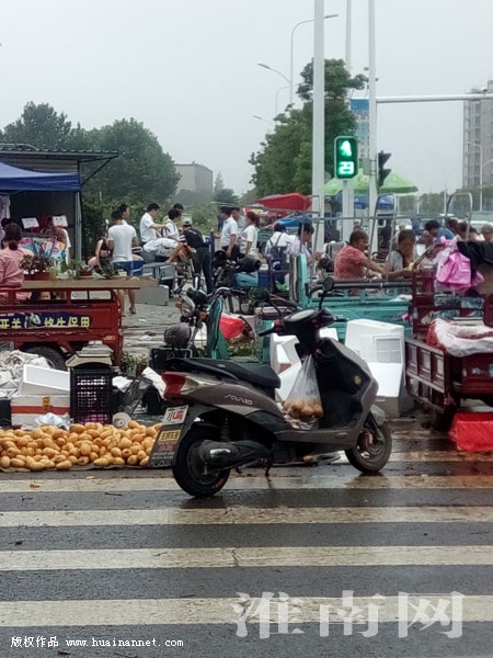 7月28日上午,市民曹先生向淮河早報、淮南網記者反映,在泉山臨時菜市場與朝陽路相交處,一些經營者將攤點直接擺在斑馬線上,導致斑馬線嚴重受阻。(記者)